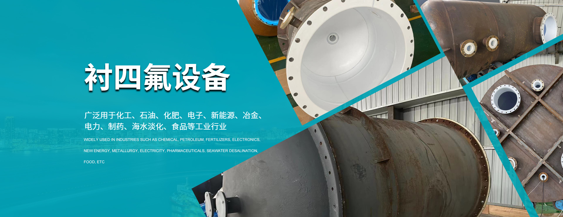 公司主要產品1. 鋼襯PTFE、ETFE、PVDF、PFA、PP、PO反應釜、儲罐、塔節、運輸罐等。2.鋼襯PTFE、ETFE、FEP、PFA、PP、PO管道、管配件(整體模壓)。3.PTFE列管式、片式、盤管式熱交換器。4. PTFE波紋補償器5. 特氟隆風管防粘、防腐噴涂。可廣泛用于化工、石油、化肥、電子、新能源、冶金、電力、制藥、海水淡化、食品等工業行業。